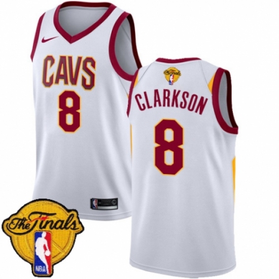 Men's Nike Cleveland Cavaliers #8 Jordan Clarkson Authentic White 2018 NBA Finals Bound NBA Jersey - Association Edition