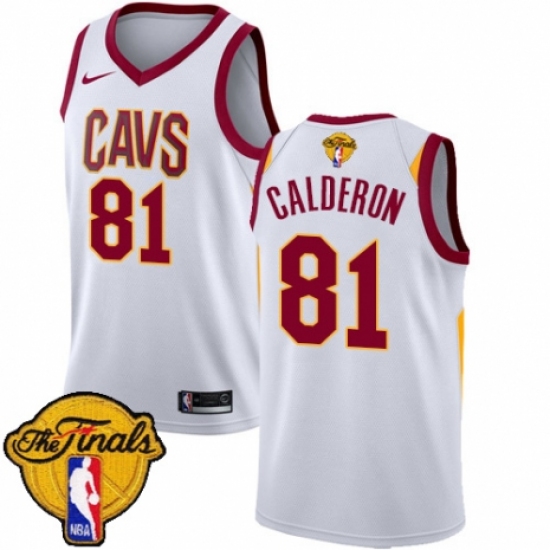>Men's Nike Cleveland Cavaliers #81 Jose Calderon Authentic White 2018 NBA Finals Bound NBA Jersey - Association Edition