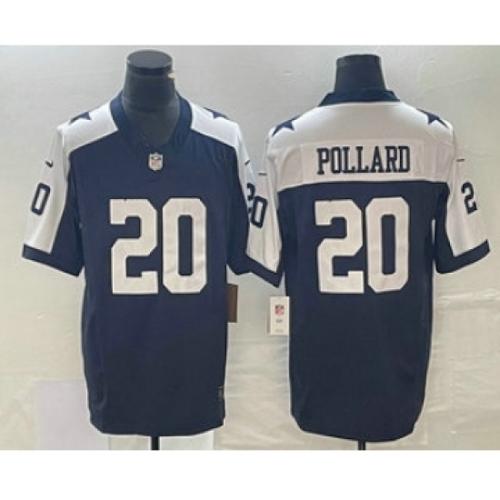 Men's Nike Dallas Cowboys #20 Tony Pollard Navy Blue Thanksgiving 2023 FUSE Vapor Limited Stitched Jersey