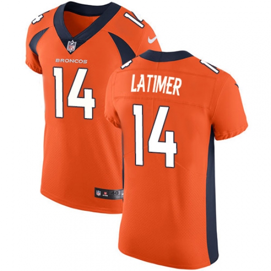 Home>NFL>Denver Broncos>Cody Latimer>Men's Nike Denver Broncos #14 Cody Latimer Orange Team Color Vapor Untouchable Elite Player NFL Jersey