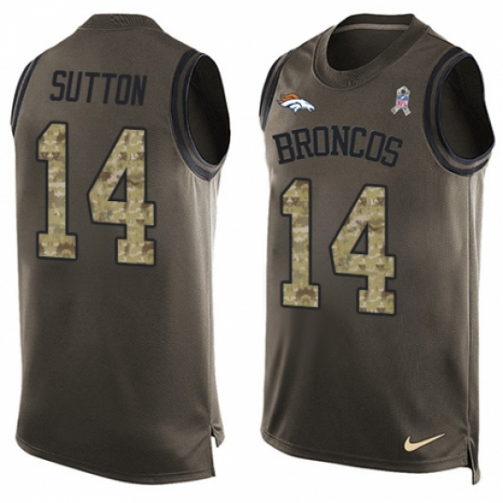 >Men's Nike Denver Broncos #14 Courtland Sutton Limited Green Salute to Service Tank Top NFL Jersey