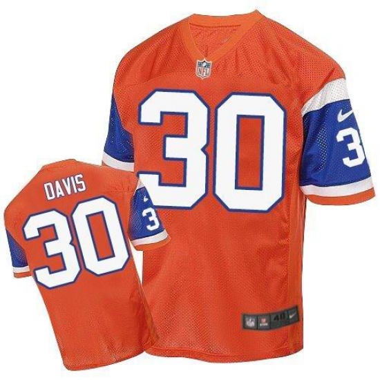 Men's Nike Denver Broncos #30 Terrell Davis Elite Orange Throwback NFL Jersey