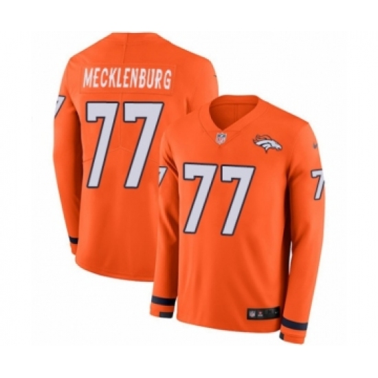 >Men's Nike Denver Broncos #77 Karl Mecklenburg Limited Orange Therma Long Sleeve NFL Jersey