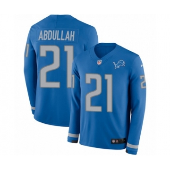 >Men's Nike Detroit Lions #21 Ameer Abdullah Limited Blue Therma Long Sleeve NFL Jersey