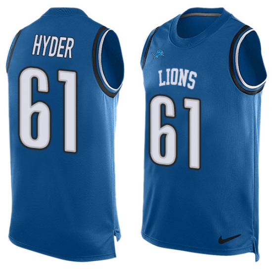 Home>NFL>Detroit Lions>Kerry Hyder>Men's Nike Detroit Lions #61 Kerry Hyder Limited Light Blue Player Name & Number Tank Top NFL Jersey