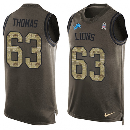 Home>NFL>Detroit Lions>Brandon Thomas>Men's Nike Detroit Lions #63 Brandon Thomas Limited Green Salute to Service Tank Top NFL Jersey