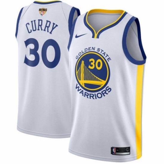 >Men's Nike Golden State Warriors #30 Stephen Curry Authentic White Home 2018 NBA Finals Bound NBA Jersey - Association Edition