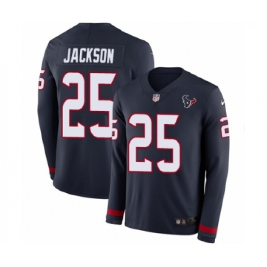 >Men's Nike Houston Texans #25 Kareem Jackson Limited Navy Blue Therma Long Sleeve NFL Jersey