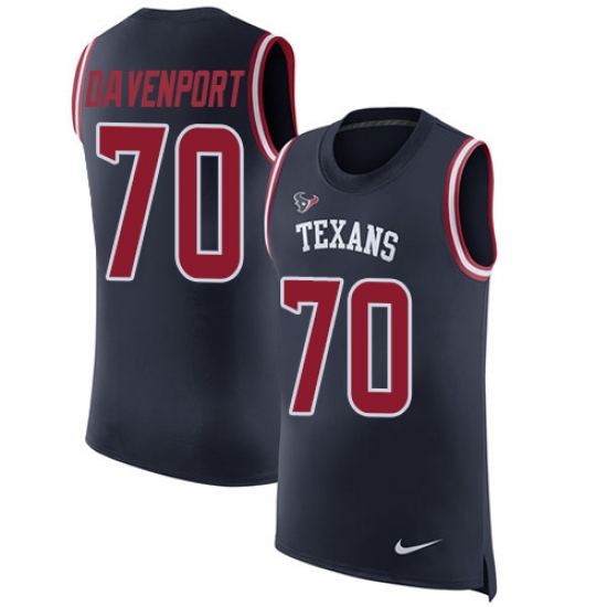 Men's Nike Houston Texans #70 Julien Davenport Limited Navy Blue Rush Player Name & Number Tank Top NFL Jersey