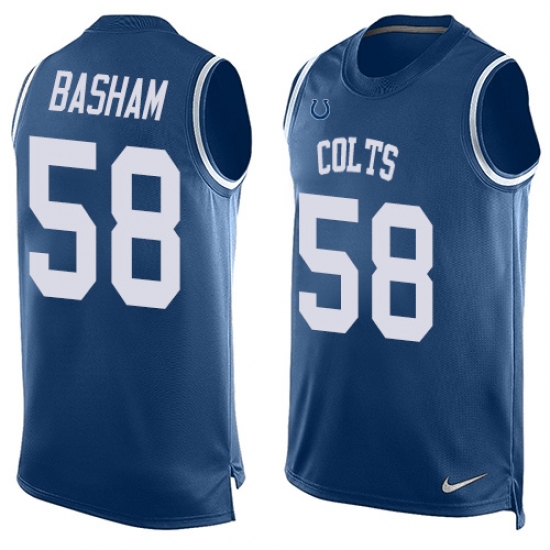 Men's Nike Indianapolis Colts #58 Tarell Basham Limited Royal Blue Player Name & Number Tank Top NFL Jersey