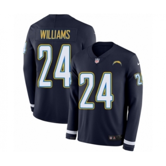 >Men's Nike Los Angeles Chargers #24 Trevor Williams Limited Navy Blue Therma Long Sleeve NFL Jersey