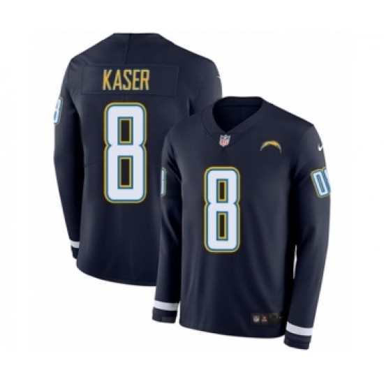>Men's Nike Los Angeles Chargers #8 Drew Kaser Limited Navy Blue Therma Long Sleeve NFL Jersey