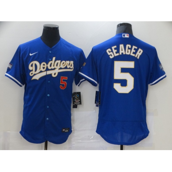 Men's Los Angeles Dodgers #5 Corey Seager Nike Royal 2020 World Series Champions Patch Alternate Replica Jersey