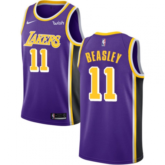 >Men's Nike Los Angeles Lakers #11 Michael Beasley Swingman Purple NBA Jersey - Statement Edition