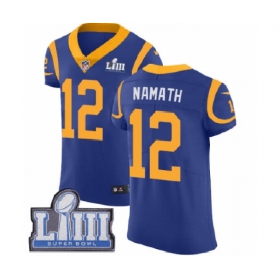 Men's Nike Los Angeles Rams #12 Joe Namath Royal Blue Alternate Vapor Untouchable Elite Player Super Bowl LIII Bound NFL Jersey