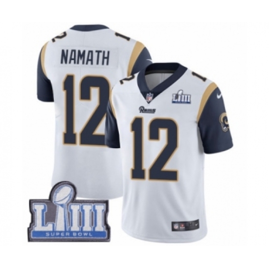 Men's Nike Los Angeles Rams #12 Joe Namath White Vapor Untouchable Limited Player Super Bowl LIII Bound NFL Jersey