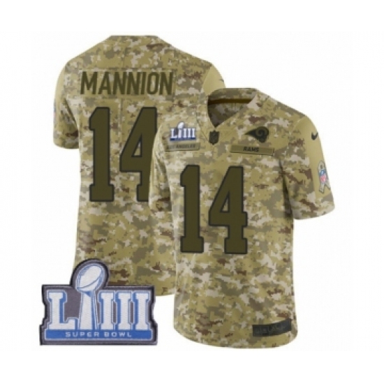 >Men's Nike Los Angeles Rams #14 Sean Mannion Limited Camo 2018 Salute to Service Super Bowl LIII Bound NFL Jersey