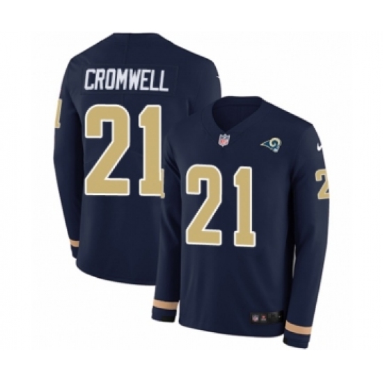 >Men's Nike Los Angeles Rams #21 Nolan Cromwell Limited Navy Blue Therma Long Sleeve NFL Jersey
