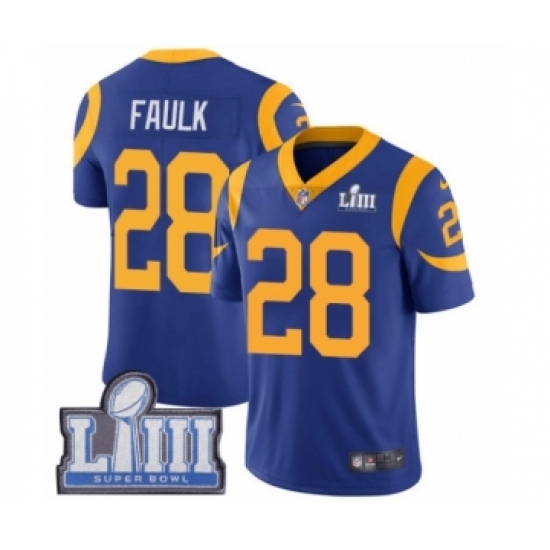 Men's Nike Los Angeles Rams #28 Marshall Faulk Royal Blue Alternate Vapor Untouchable Limited Player Super Bowl LIII Bound NFL Jersey