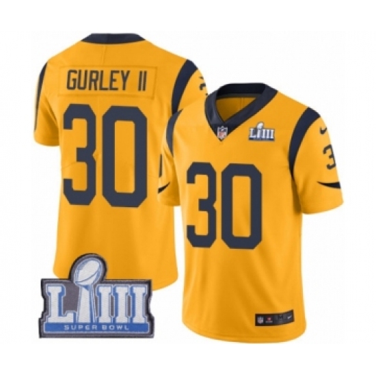 >Men's Nike Los Angeles Rams #30 Todd Gurley Limited Gold Rush Vapor Untouchable Super Bowl LIII Bound NFL Jersey