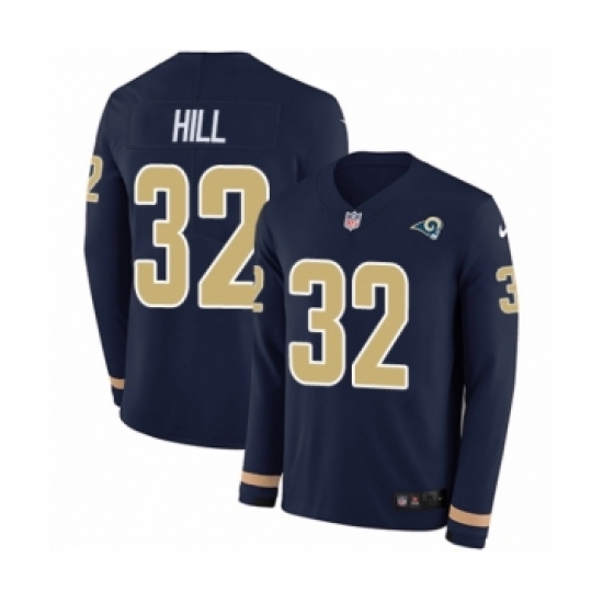 >Men's Nike Los Angeles Rams #32 Troy Hill Limited Navy Blue Therma Long Sleeve NFL Jersey