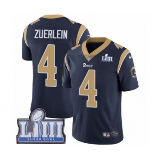Men's Nike Los Angeles Rams #4 Greg Zuerlein Navy Blue Team Color Vapor Untouchable Limited Player Super Bowl LIII Bound NFL Jersey