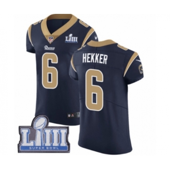 Men's Nike Los Angeles Rams #6 Johnny Hekker Navy Blue Team Color Vapor Untouchable Elite Player Super Bowl LIII Bound NFL Je
