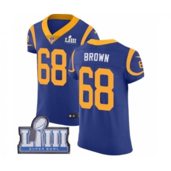 Men's Nike Los Angeles Rams #68 Jamon Brown Royal Blue Alternate Vapor Untouchable Elite Player Super Bowl LIII Bound NFL Jersey
