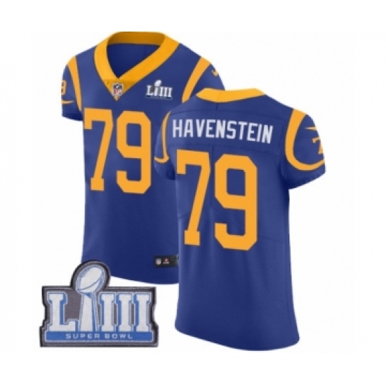 Men's Nike Los Angeles Rams #79 Rob Havenstein Royal Blue Alternate Vapor Untouchable Elite Player Super Bowl LIII Bound NFL Jersey