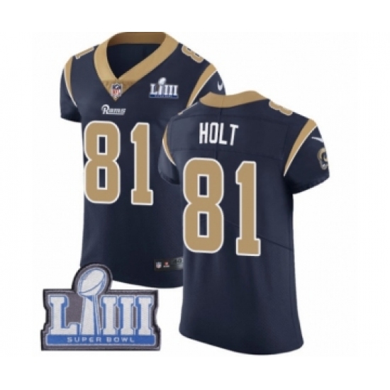 >Men's Nike Los Angeles Rams #81 Torry Holt Navy Blue Team Color Vapor Untouchable Elite Player Super Bowl LIII Bound NFL Jersey