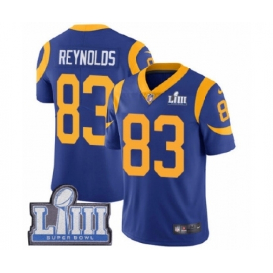 >Men's Nike Los Angeles Rams #83 Josh Reynolds Royal Blue Alternate Vapor Untouchable Limited Player Super Bowl LIII Bound NFL Jersey