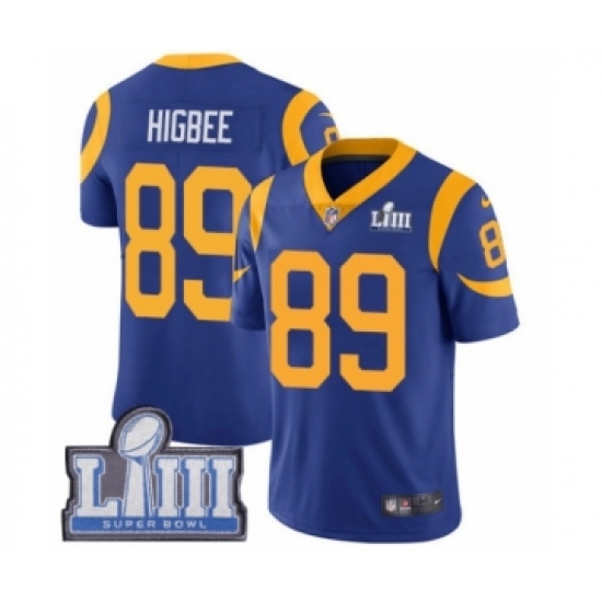 Men's Nike Los Angeles Rams #89 Tyler Higbee Royal Blue Alternate Vapor Untouchable Limited Player Super Bowl LIII Bound NFL Jersey