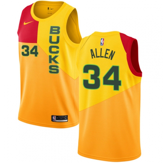 Men's Nike Milwaukee Bucks #34 Ray Allen Swingman Yellow NBA Jersey - City Edition