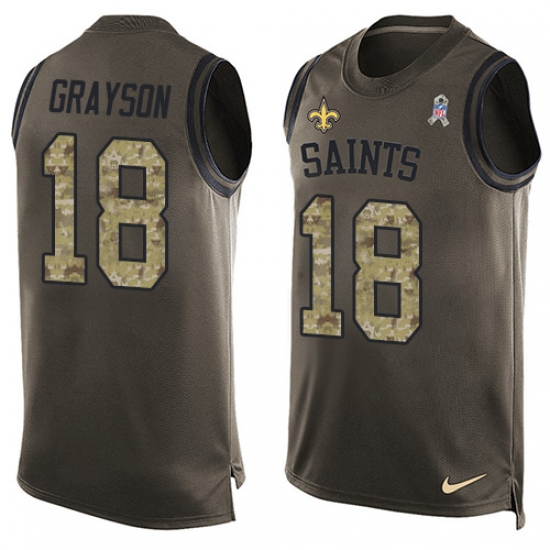 Home>NFL>New Orleans Saints>Garrett Grayson>Men's Nike New Orleans Saints #18 Garrett Grayson Limited Green Salute to Service Tank Top NFL Jersey