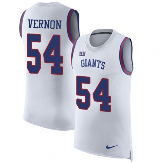 Home>NFL>New York Giants>Olivier Vernon>Men's Nike New York Giants #54 Olivier Vernon Limited White Rush Player Name & Number Tank Top NFL Jersey