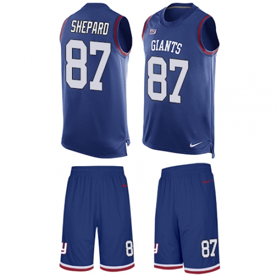 Men's Nike New York Giants #87 Sterling Shepard Limited Royal Blue Tank Top Suit NFL Jersey