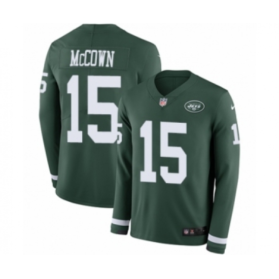 >Men's Nike New York Jets #15 Josh McCown Limited Green Therma Long Sleeve NFL Jersey
