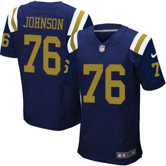 Men's Nike New York Jets #76 Wesley Johnson Elite Navy Blue Alternate NFL Jersey