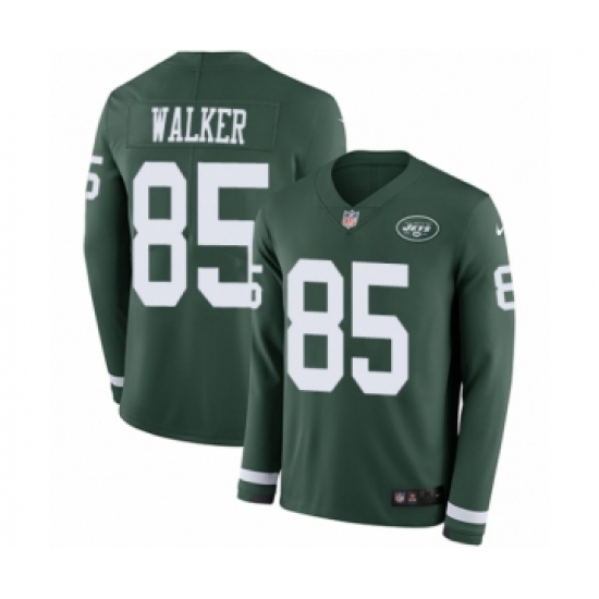 >Men's Nike New York Jets #85 Wesley Walker Limited Green Therma Long Sleeve NFL Jersey