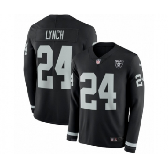 Men's Nike Oakland Raiders #24 Marshawn Lynch Limited Black Therma Long Sleeve NFL Jersey