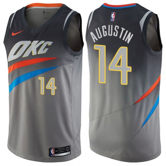 >Men's Nike Oklahoma City Thunder #14 D.J. Augustin Swingman Gray NBA Jersey - City Edition