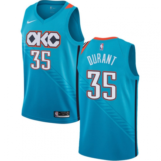 Men's Nike Oklahoma City Thunder #35 Kevin Durant Swingman Turquoise NBA Jersey - City Edition