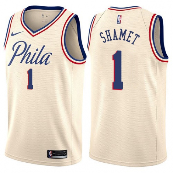 Men's Nike Philadelphia 76ers #1 Landry Shamet Swingman Cream NBA Jersey - City Edition