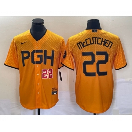 Men's Nike Pittsburgh Pirates #22 Andrew McCutchen Number Gold 2023 City Connect Stitched Jersey