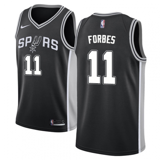 >Men's Nike San Antonio Spurs #11 Bryn Forbes Swingman Black NBA Jersey - Icon Edition
