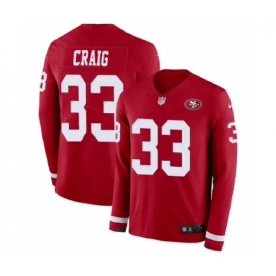 >Men's Nike San Francisco 49ers #33 Roger Craig Limited Red Therma Long Sleeve NFL Jersey