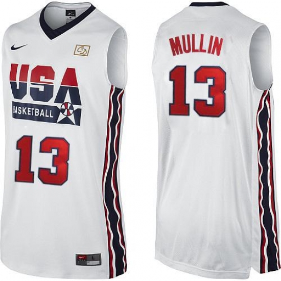 Men's Nike Team USA #13 Chris Mullin Authentic White 2012 Olympic Retro Basketball Jersey