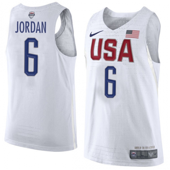 Men's Nike Team USA #6 DeAndre Jordan Authentic White 2016 Olympic Basketball Jersey