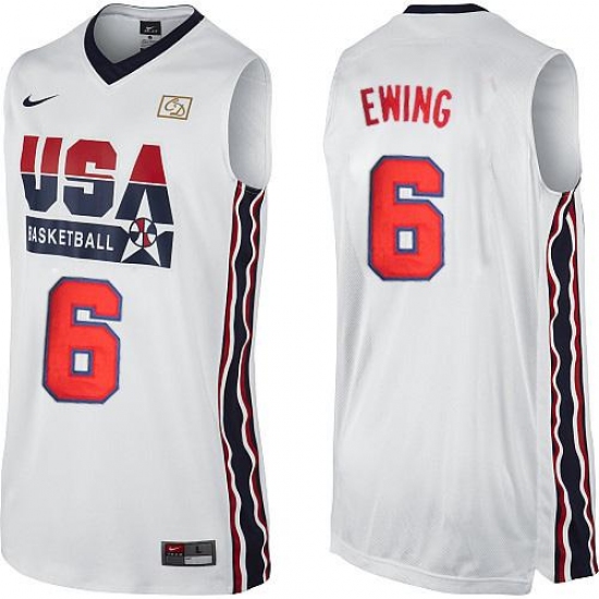 Men's Nike Team USA #6 Patrick Ewing Authentic White 2012 Olympic Retro Basketball Jersey