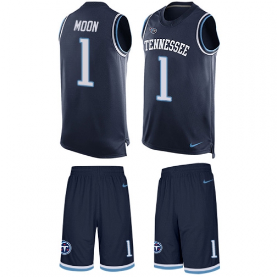 Men's Nike Tennessee Titans #1 Warren Moon Limited Navy Blue Tank Top Suit NFL Jersey
